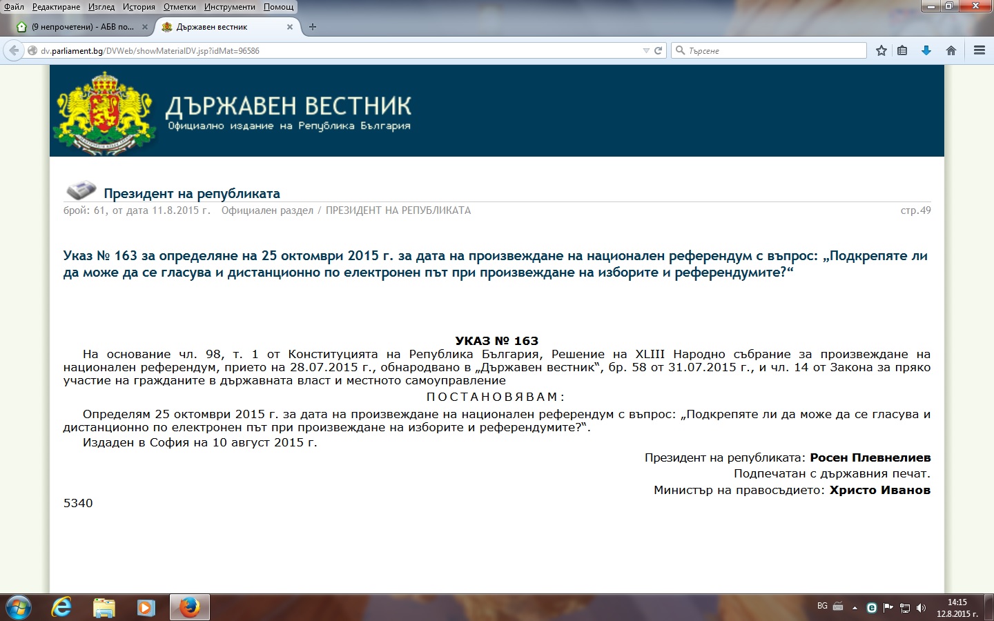 Указ 163 на Президента на Република България, 2015 г.